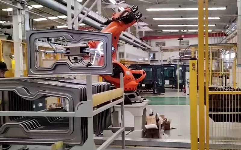 視覺引導機械手抓取汽車門框用3D定位架子的XY和角度還有門板的高度,用2D視覺系統定位門板的抓取位置,引導機械臂抓取工程車門板。