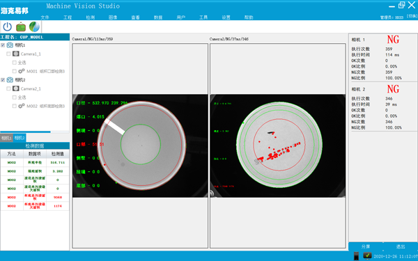 2.主要功能:紙杯外側壁缺陷檢測、污漬檢測,檢測結果IO信號輸出。 |