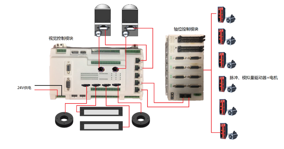 | 產(chǎn)品主要功能,運(yùn)動控制模塊,相機(jī)供電觸發(fā)控制模塊,光源控制模塊,圖像處理系統(tǒng),輸入輸出IO信號模塊。 |